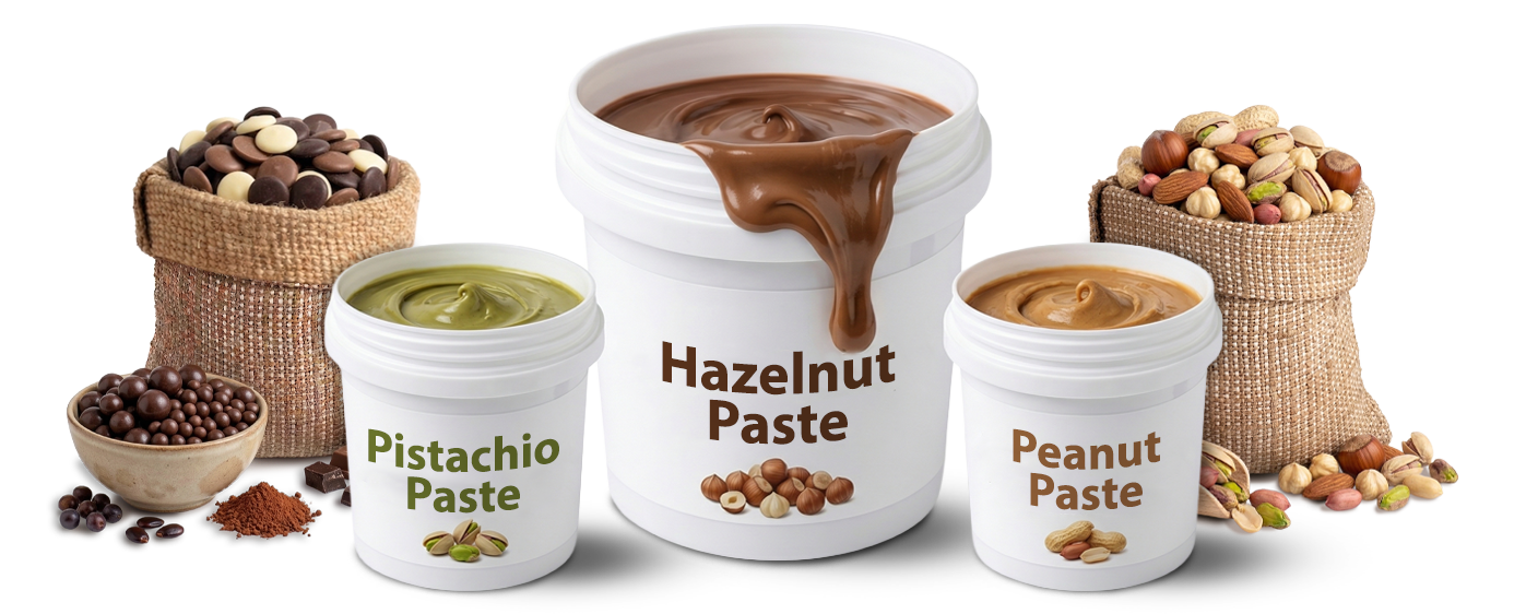 We develop tailor-made recipes and spreads in close collaboration with our clients, combining confectionery expertise with fully customizable packaging solutions.